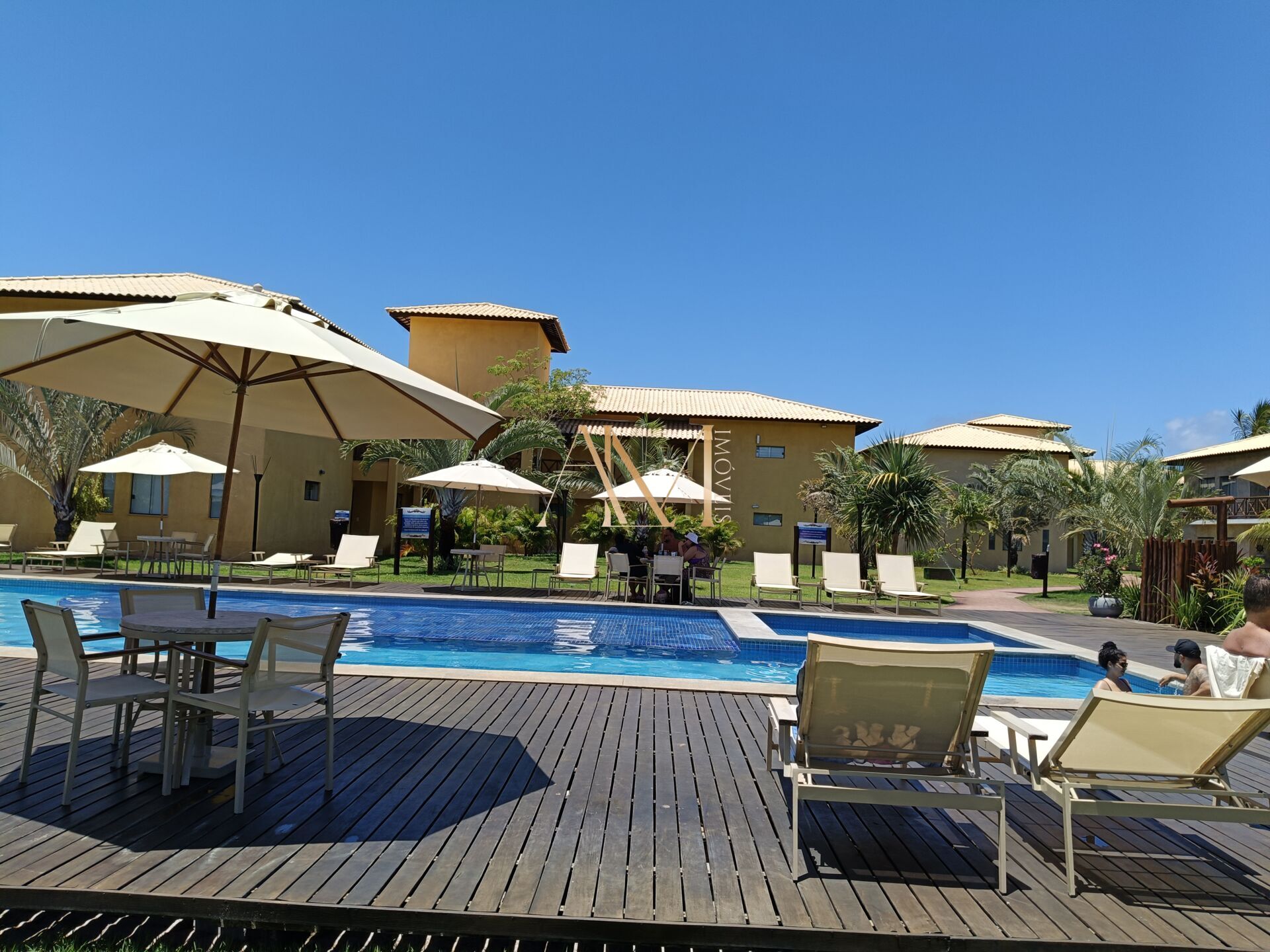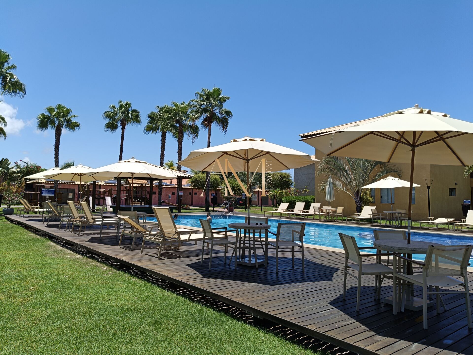 O condomínio fica a 150 M da praia e possui uma lagoa com uma linda ponte, de onde se pode assistir ao por do sol.